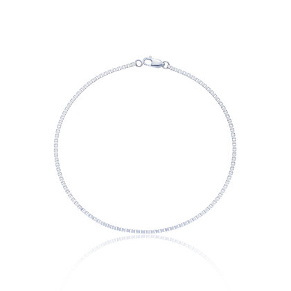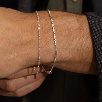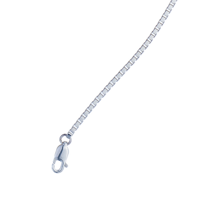 Built for endurance, this Venetian box chain made up of strong, interlocking cubes resembles a solid stream of silver ...