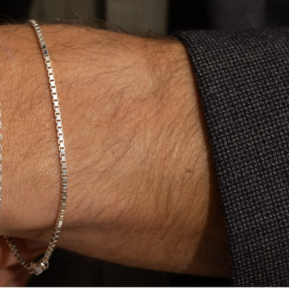 A box chain is called a Venetian chain because it originated in Venice, Italy, where artisans developed its unique construction of interlocking square links. While sometimes called "silk" due to its smooth feel, the term primarily links to its Venetian, Italy heritage of expert craftsmanship